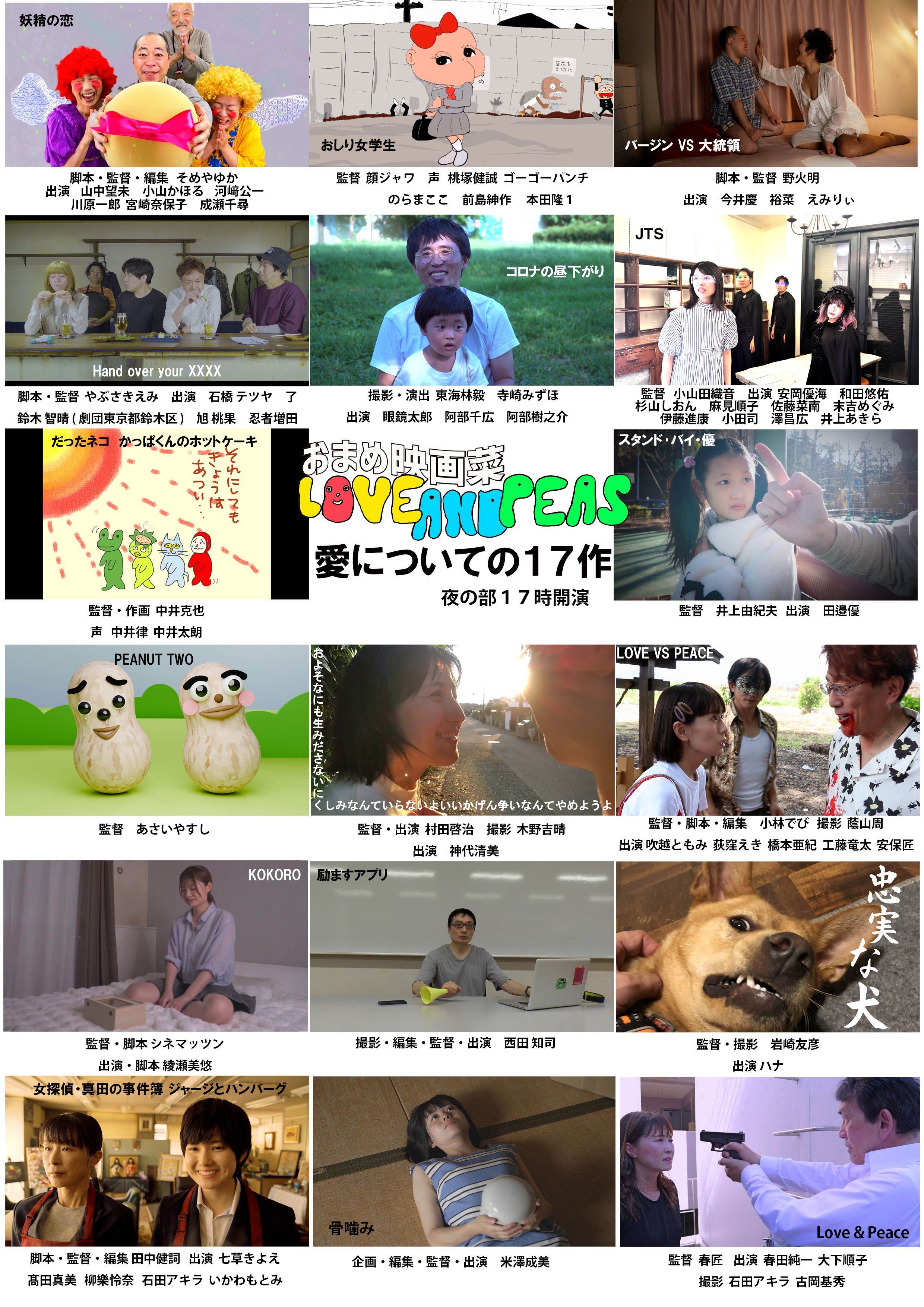 【夜の部 おまめ映画菜ラブアンドピーズ】16時半開場 17時開演